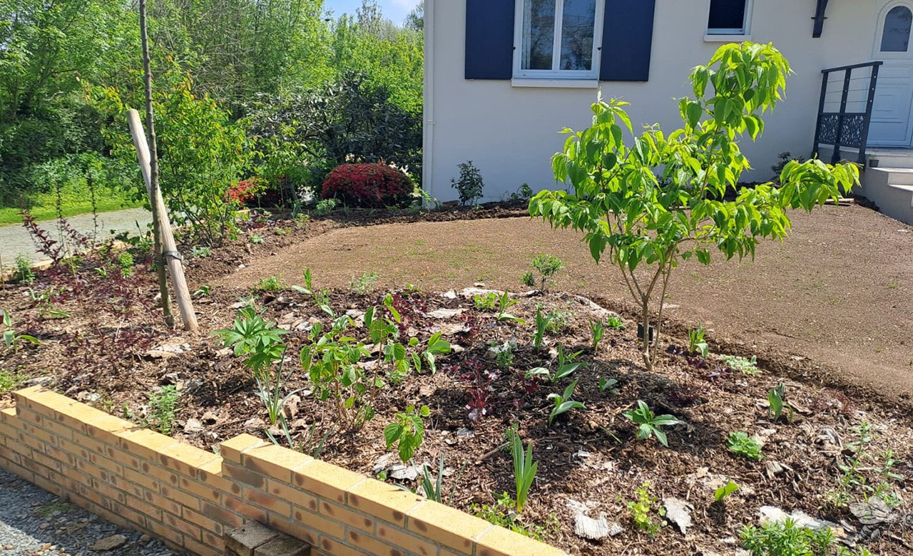les abords de la maison se trouvent transformés. Le massif s’installe, prend racine et commence déjà à dialoguer avec le paysage alentour. Il ne reste plus qu’à le voir grandir, s’étoffer et s'exprimer, au fil des saisons.